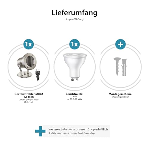 [Grazie alla spina Schuko, la lampada da giardino MIBU è subito pronta all'uso e fornisce un'illuminazione efficiente e affidabile, rendendo l'installazione semplice e veloce.
