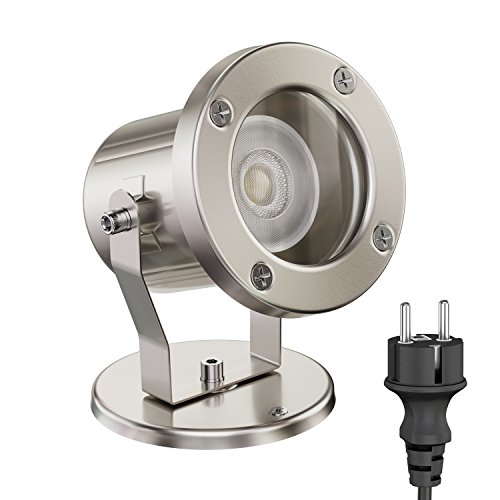 Ledscom.de Faretto da giardino a LED MIBU per uso esterno, acciaio inox, incl. lampada GU10 5,473W 468lm 30° bianco caldo