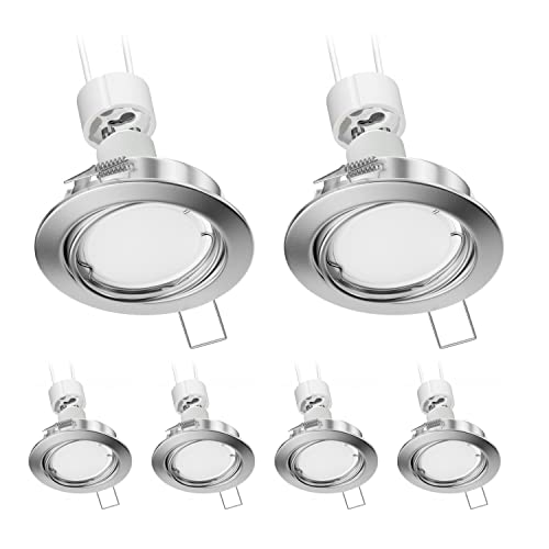 Ledscom.de Faretto da incasso a soffitto FERE Cornice da incasso cromo opaco orientabile GU10 PAR16 LED 6,826W= 6,826W cad. 630lm bianco caldo, 6 pz.