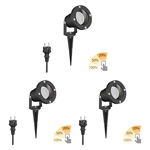 Ledscom.de Lampada da giardino con picchetto a terra DUK, alluminio nero resistente alle intemperie + lampada LED 3-step dimmerabile bianco caldo W 500lm ciascuna, 3 pz.
