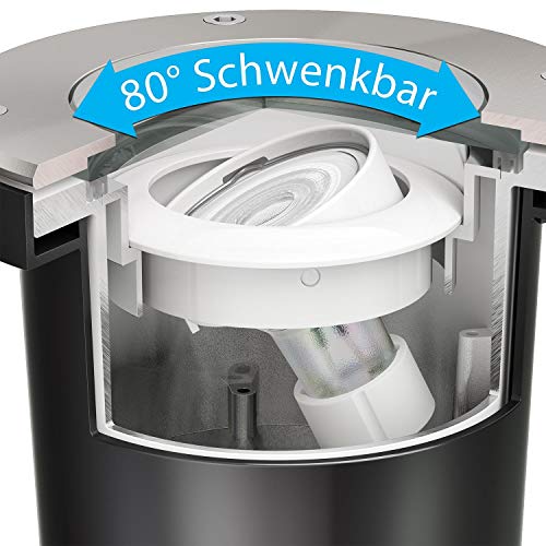 Ledscom.de Lampada da incasso BOFU, tonda girevole per esterni in acciaio inox IP67 150mm Ø incl. lampada LED (bianco caldo, 5,4W, 510lm ciascuno, 50°), 2pz.