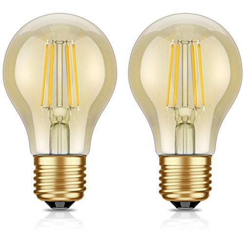 Ledscom.de E27 LED Lampadina filamento Vintage dorato A60 4W=36W extra-bianca calda 400lm A++ per interni ed esterni, 2 PZ