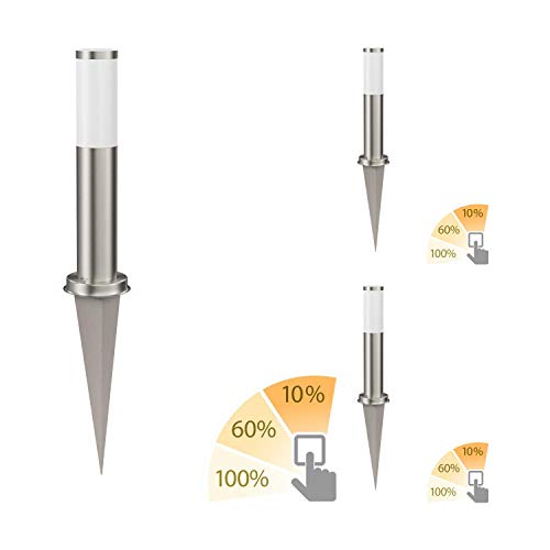 Ledscom.de Paletto luminoso PORU con picchetto di terra, resistente alle intemperie, acciaio inox, rotondo, 38,5cm, incl. lampada E27 max. ogni 963lm bianco caldo dimmerabile in 3 fasi senza dimmer,