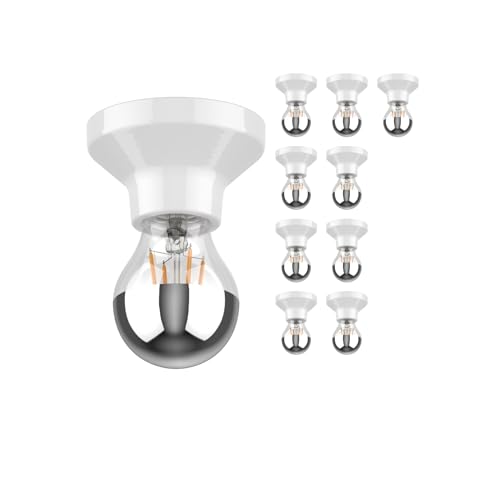 Ledscom.de 10 pezzi plafoniera Elektra porcellana bianca E27 LED, A60, bianco caldo, 5,82W, 667lm, testa a specchio (argento)