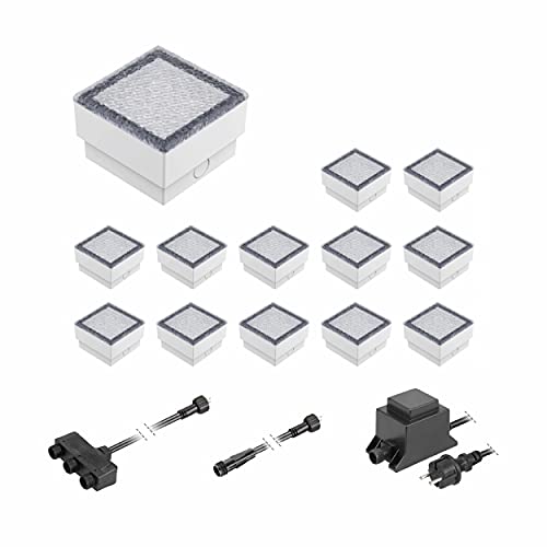 Ledscom.de Pietra di pavimentazione LED GORGON Luce da incasso a terra per esterni, 10x10cm, 12V, bianco caldo 13er Set
