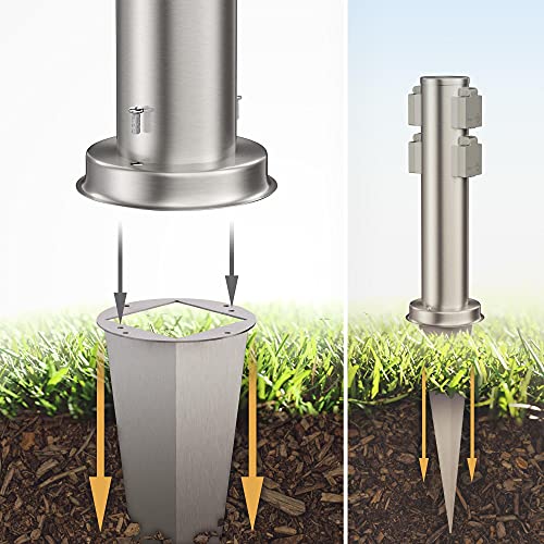 Ledscom.de Presa esterna PORU con picchetto di terra, resistente alle intemperie, 4 volte, acciaio inossidabile, rotondo, 38cm, 3 pezzi.