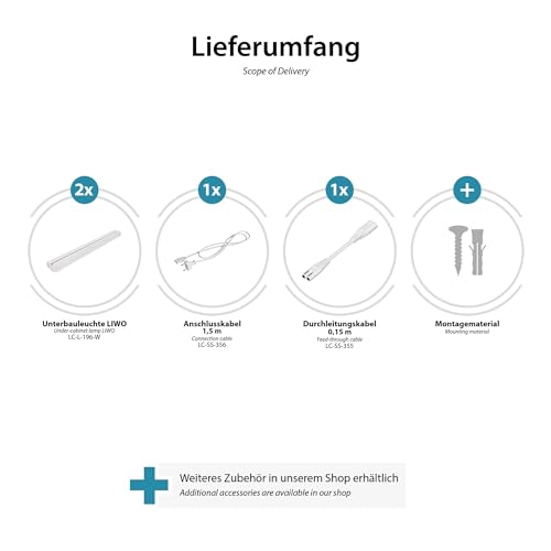 [Grazie al suo design semplice, la lampada sottopensile LIWO è perfetta come striscia luminosa sul lato inferiore di armadi da cucina, librerie, guardaroba e piani di lavoro, nonché per l'illuminazione interna di corridoi, cantine e laboratori.