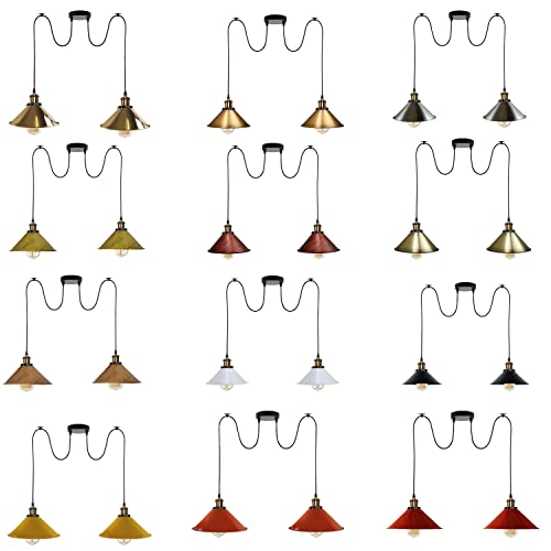LEDSone Industrial Vintage ratio style 2 Heads Spider Lampade a sospensione regolabili in metallo, presa E27 paralumi a cono di colore blu sala da pranzo cucina camera da letto coperta casa qualsiasi stanza ristorante bar salone