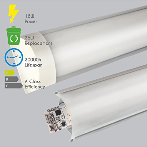 2. IL TUBO LED RISPARMIO ENERGETICO consuma meno energia dei raccordi per tubi fluorescenti. La stecca a led da 18 W 2 PIEDI 60 CM è un perfetto sostituto per una singola lampada fluorescente da 36w 4 piedi 120 cm o un doppio raccordo fluorescente 2x18w 2 piedi 60 cm.