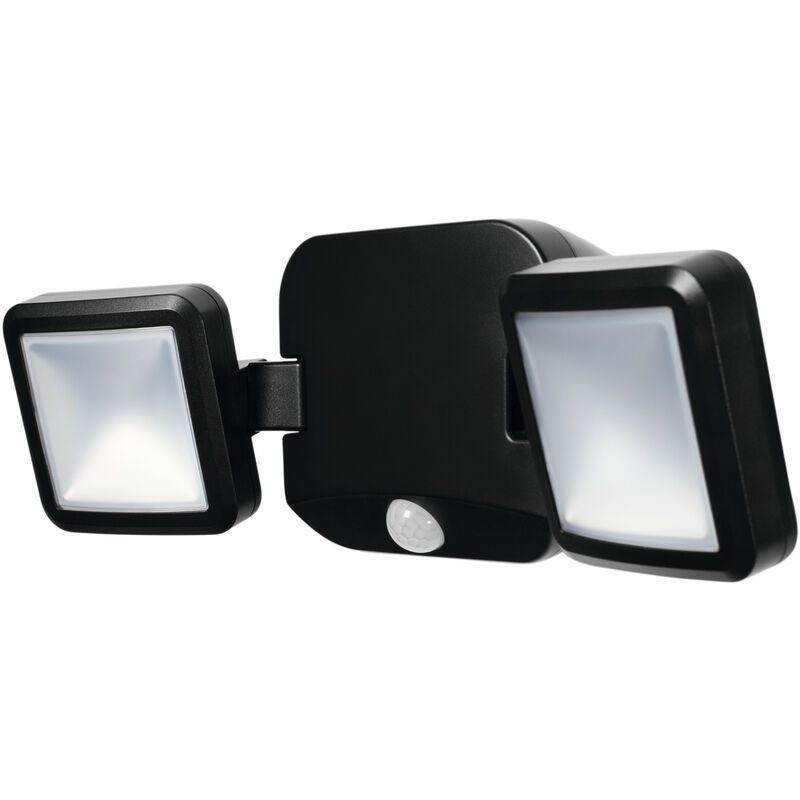 Proiettori per esterni con diffusore doppio. Caratteristiche prodotto: Flusso luminoso fino a 480 lm. Sensore di luminosità e movimento integrato. Durata della batteria in operatività continua: fino a 5 h. Tipo di protezione: IP54. Vantaggi prodotto: Illuminazione a richiesta e risparmio energetico grazie al sensore di movimento e luce diurna. Indipendente dall'alimentazione elettrica grazie alla batteria. Energeticamente efficiente grazie alla tecnologia LED. Aree applicative: Esterni. Aree in cui non c'è alimentazione disponibile. Apparecchiatura / Accessori: Viti e tasselli di montaggio inclusi. Batterie richieste: 4xD (non incluse nel materiale di spedizione).