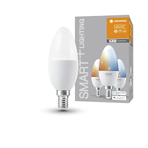 LEDVANCE Lampada LED intelligente con tecnologia WiFi, attacco E14, dimmerabile, colore della luce variabile (2700-6500K), sostituzione per 40W, SMART+ WiFi Candle Tunable White, confezione da 3