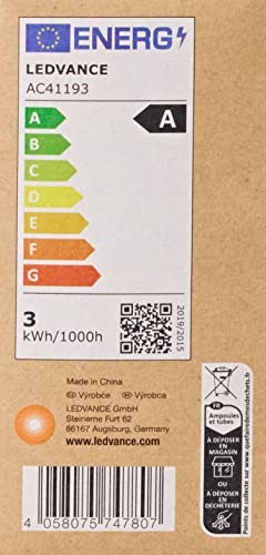 LEDVANCE Lampada a risparmio energetico a LED, lampadina a filamento di vetro, E27, bianco caldo (3000K), 2,5 watt, sostituisce la lampadina da 40W, altamente efficiente, confezione da 6