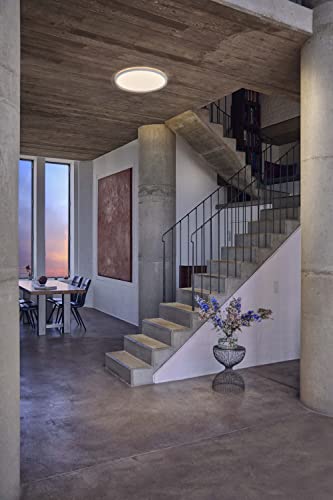 LUCE PIACEVOLE: plafoniera moderna ultrasottile con luce bianca calda (3000K). Offre un'illuminazione d'ambiente soffusa più luce indiretta ideale per ogni interno.