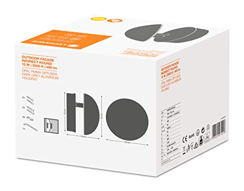 Ledvance Outdoor Facade Indirect Applique da Esterno, 13W, Luce Calda, 3000K IP54, Grigio Scuro