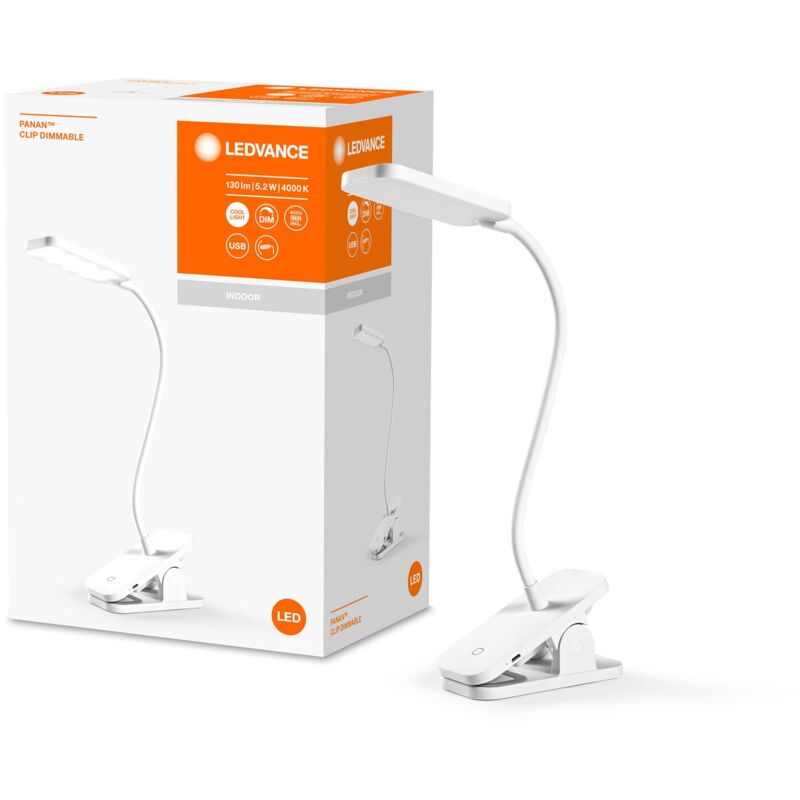 Mobile table luminaire with continuous dimming and clip fixture. Caratteristiche prodotto: Temperatura di colore: 4.000 K. Intensità della luce selezionabile tramite interruttore touch. Can be folded and bend to 180° for maximum flexibility. Vantaggi prodotto: Design funzionale e attraente. Può essere facilmente spostato ovunque serva luce grazie all'alimentazione a batteria. Meccanismo a clip per fissare facilmente l'apparecchio a diversi elementi di arredo. Braccio pieghevole con sorgente luminosa orientabile. Accensione, spegnimento e regolazione dell'intensità luminosa tramite un sensore touch sulla base dell'apparecchio. Aree applicative: Camere da letto, studi. Soggiorni. Solo per uso in interni. Apparecchiatura / Accessori: Cavo di ricarica USB.
