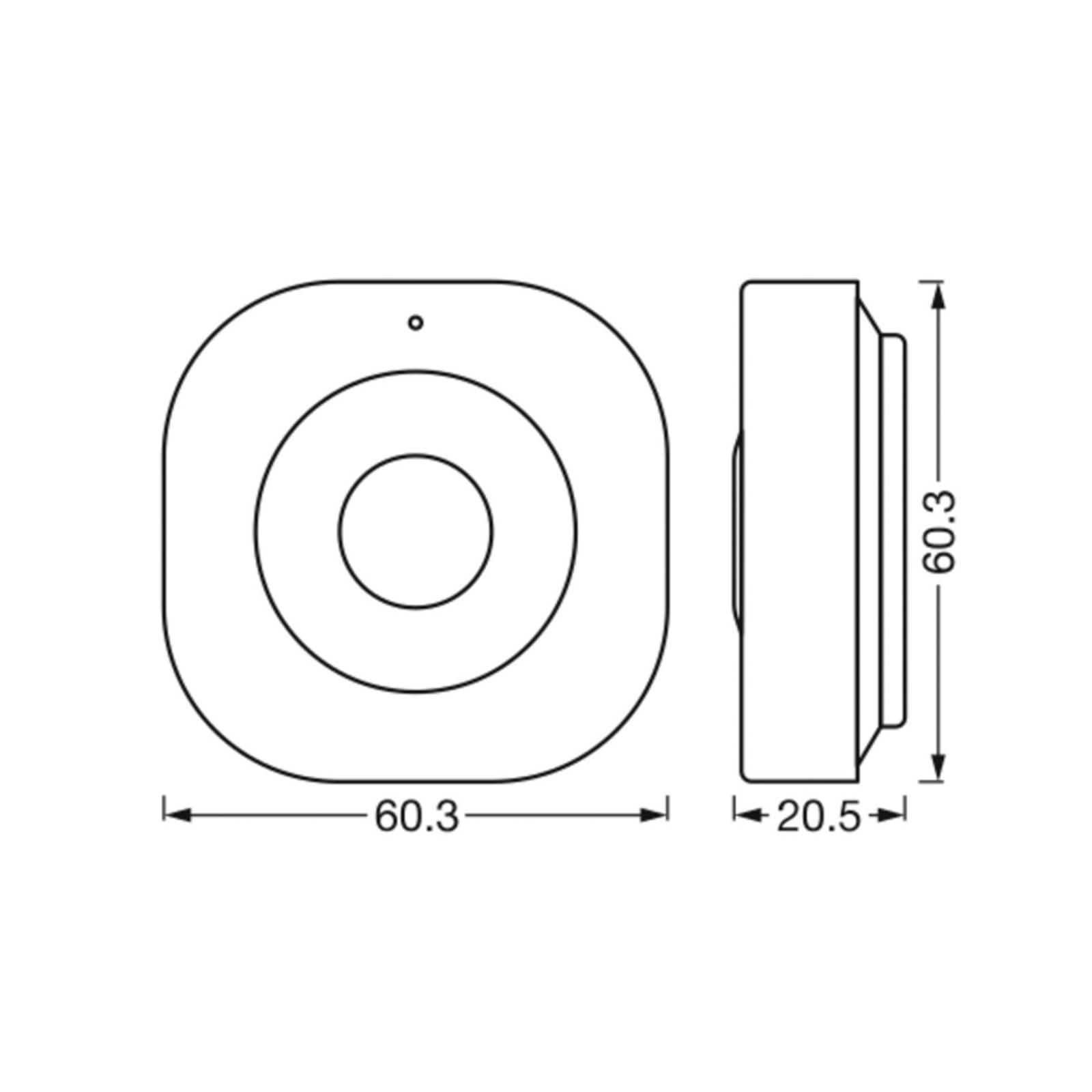 Sensore di movimento intelligente per il controllo dei prodotti SMART+ WiFi Questo sensore di movimento consente il controllo automatico dell'illuminazione interna SMART+ WiFi e il controllo degli accessi nell'area rilevata. Il sensore, con custodia in plastica ABS bianca, viene semplicemente fissato alla posizione desiderata utilizzando il nastro adesivo sul retro. L'app LEDVANCE SMART+ WiFi sullo smartphone/tablet viene utilizzata per collegare il sensore di movimento con gli apparecchi/sorgenti luminose SMART+ WiFi da controllare e per impostare la durata dell'illuminazione desiderata dopo l'attivazione, l'ora dell'interruttore della luce, ecc. È inoltre possibile impostare notifiche quando viene rilevato un accesso, in modo da poter monitorare la presenza di persone da qualsiasi luogo se è disponibile una connessione Internet. Il sensore si attiva anche tramite app o interruttore a scorrimento direttamente sul sensore - Tipo di sensore: PIR - Portata: 5 m - Autonomia di 6 mesi per carica della batteria (con Ø 5 attivazioni al giorno) - Include cavo di ricarica e kit di installazione