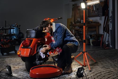 ROBUSTA E SICURA: Luce da lavoro con supporto a treppiede sicuro, classe di protezione IP54 per un ottimo funzionamento in acqua e polvere: ottima come lampada da cantiere