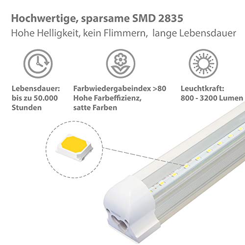 LEDVero 2x SMD LED Tubo 90cm integrato Bianco caldo- Tubo fluorescente T8 G13 - Cover trasparente 14 W, 1400 Lumen- pronto per l'installazione