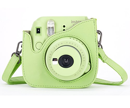 Leebotree Custodia Compatibile con Instax Mini 9 / Mini 8 8+Fotocamera istantanea, Protettiva in Pelle Soft PU con cinturino a spalla e tasca (Verde Lime)