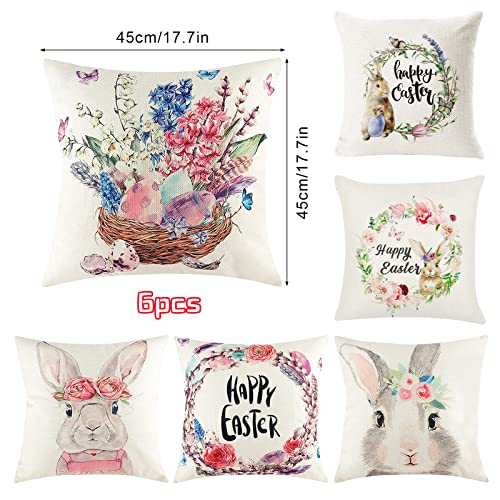 Leeelyan Federa per Cuscino Di Pasqua 6 Pack, Federa per Cuscino 45 x 45 cm, Federa per Cuscino in Cotone e Lino, Pasqua Stampato Federa, per Divano Decorazione Della Casa