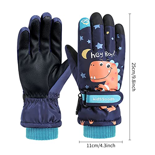 Leeelyan Guanti da Sci per Bambini, Guanti Neve Bambini, Guanti Neve per Bambini 6 ai 10 Anni, Guanti Neve Bambino, Caldi e Antivento Impermeabili, per Corsa Sci Snowboard Ciclismo (Blu)