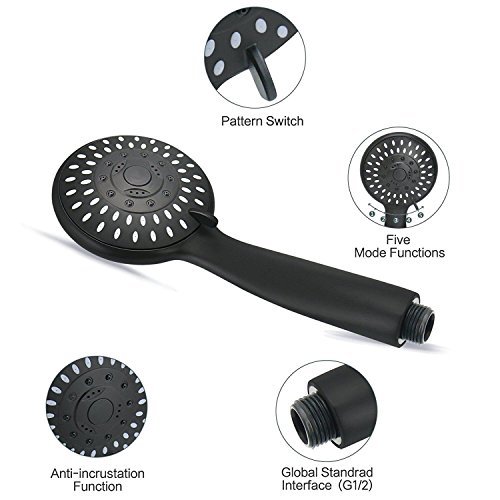 5-Way modalità: modalità di pioggia, proprio come il flusso di cascata impatto la tua pelle, la pressione è stata dispersa. Mixed mode, forte pressione dell' acqua ti permette di sentire la doccia divertente, alleviare il prurito back problema. Modalità massaggio, permette di avere più rilassato, promuovere la vitalità del cervello. Bubble mode, particelle di acqua più rilassante, ottenendo l' effetto di pulizia. Modalità scoppio, abbastanza pressione, per ottenere la funzione di risparmio idrico, consente di comfort per vasca da bagno.