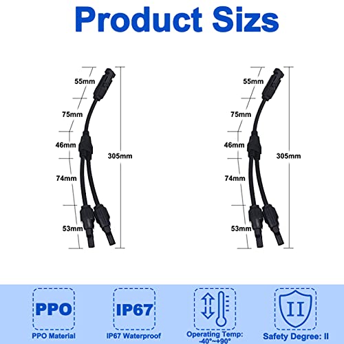 【Impermeabile】: questi connettori per rami solari utilizzano materiale PBT dell'alloggiamento protettivo, con caratteri di sicurezza antincendio. Quindi, anche se ci versi sopra dell'acqua, non avrà alcun pericolo.