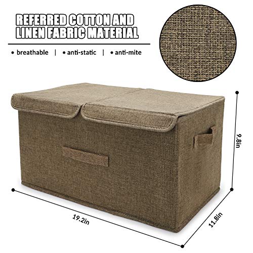Leehui Store - Contenitori a cubi di grandi dimensioni, con coperchio, pieghevole, in tessuto, con maniglie, organizer da 40 l, per riporre vestiti, libri, biancheria da letto o altro (marrone)