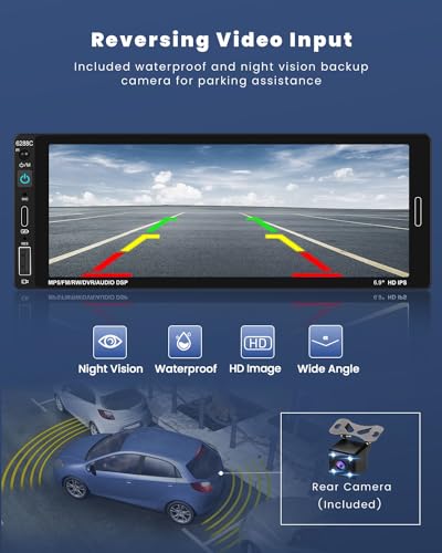 【Stereo Auto 1 Din】Il touch screen da 6,9 pollici 1 din si adatta alle aperture del cruscotto 1 din. Dimensioni dello schermo principale: 187(L)*70(H)mm. Dimensioni dell'installazione: 87(L)*52(H). Con scheda TF, USB, AUX-in, uscita audio RCA (L out R out)