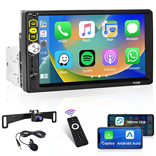 LeeKooLuu Autoradio 1 Din CarPlay con Schermo da 7 Pollici Touchscreen Autoradio Bluetooth con Android Auto Apple CarPlay Mirror Link per Android/iOS Radio FM USB SWC Retrocamera Telecomando