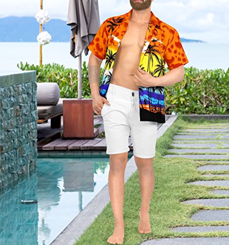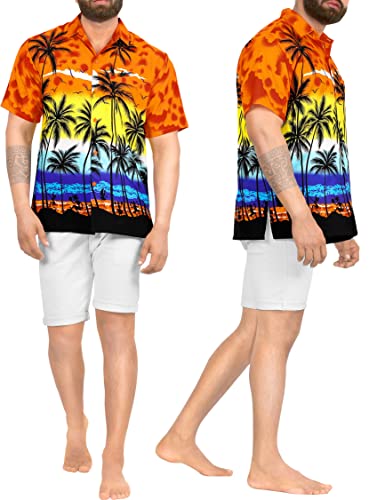LA LEELA | Funky Camicia Hawaiana da Uomo | XS - 7XL | Maniche Corte | Tasca Frontale | Stampa Hawaiana | Estivo Estate Spiaggia Palme Arancione_W138 M - Torace (in CMS): 101-111