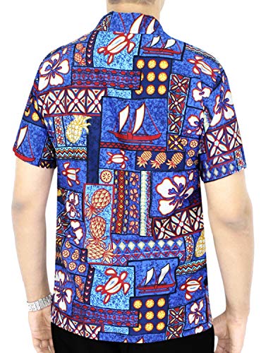 LA LEELA Hawaiian Bottone della Camicia Maglietta Maniche Giù Corta Casuale Vacanza Vacanza Beach Party Nuotata M-Torace (in CMS):101-111 Blu_W237