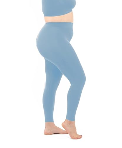 LEELA LAB Leggings Donna Taglie Forti, Linea Basic, Comodi e Versatili, Realizzati in Morbida Microfibra con Tecnologia Seamless - Made in Italy (Desaturated Blue, M/L)