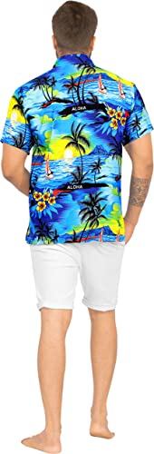 LA LEELA Shirt Camicia Hawaiana Uomo XS - 5XL Manica Corta Hawaii Tasca-Frontale Stampa Hawaiano Casuale Regular Fit Blu538 L