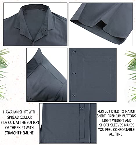 LA LEELA Shirt Camicia Hawaiana Uomo XS - 5XL Manica Corta Hawaii Tasca-Frontale Stampa Hawaiano Casuale Regular Fit GrigioPlain L