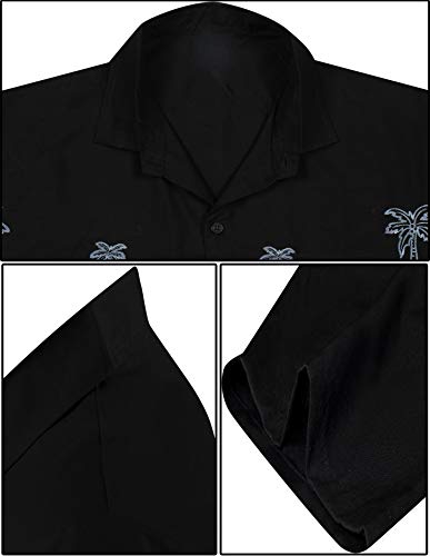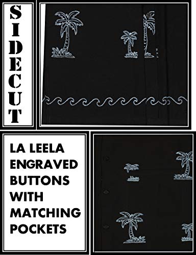 LA LEELA Solid Regular Fit Ricamato Camicia Hawaiana Uomo, Nero_W812, M