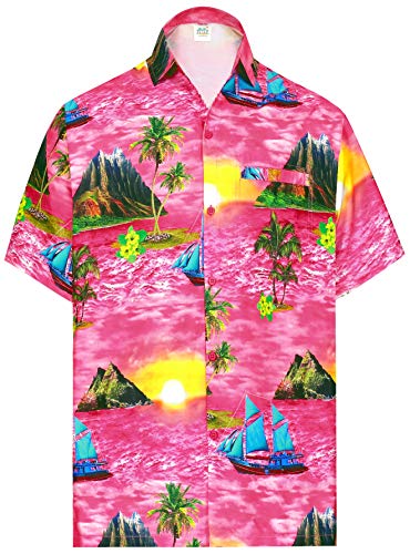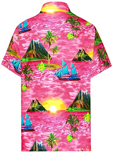 LA LEELA Uomini Albero di Palm Beach Stampato Aloha Camicia Casuale Tasca Frontale Rosa_AA396 XXL