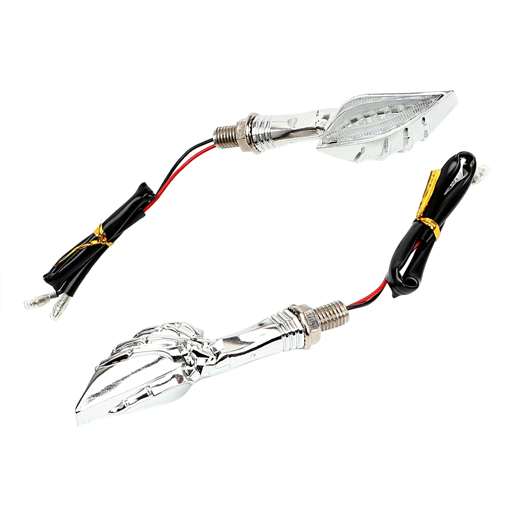 LEEPEE For Honda Kawasaki 2pcs/Set Skull Hand Moto Blinker Lamp Amber LED Turn Signal Light Motorcycle Turn Indicators