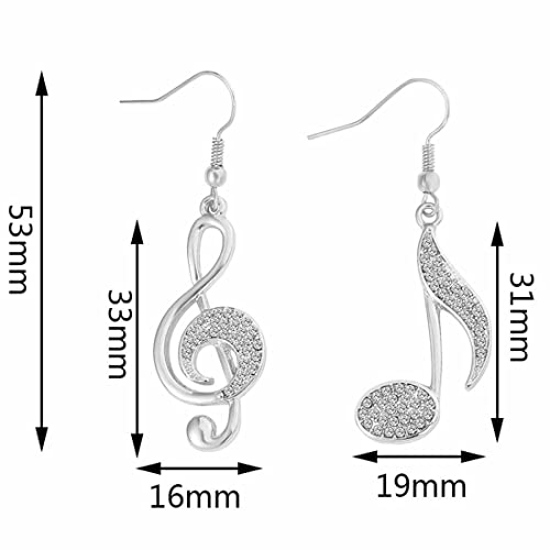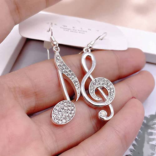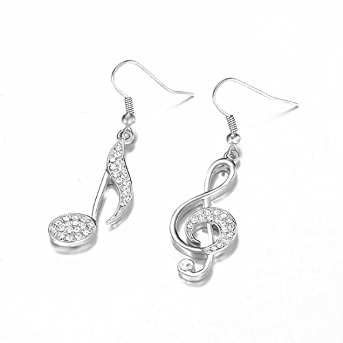 LEEQBCR 1 paio Orecchini pendenti da donna, con note musicali, orecchini anallergici, placcati oro o argento con cristalli