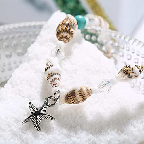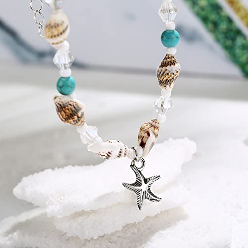 LEEQBCR 1pcs Seashell Cavigliera Starfish Turchese Bracciale alla caviglia Bracciale in argento a forma di piede per donne e ragazze