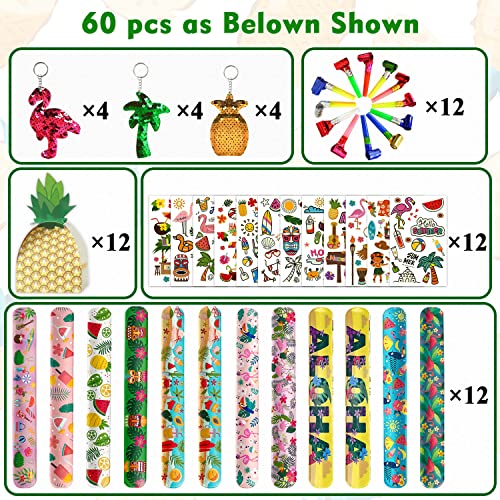 Leesgel Hawaii Gadget Compleanno Bambini, 60Pcs Hawaii Regalini Fine Festa Compleanno Portachiavi Braccialetti Soffiatori Tatuaggi Temporanei, Spiaggia Estiva Luau Tropicale Accessori Party