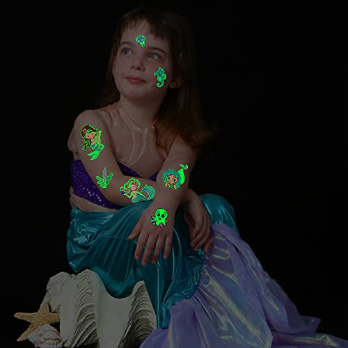 Tatuaggi finti luminosi: Tatuaggi sirena Leesgel con effetto glow, il che significa che anche in una festa con molte persone o al buio, questi tatuaggi glow ti renderanno unico nella folla!
