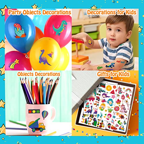 【Disegni vari e colorati】Selezionati i simpatici elementi amati dai bambini, come unicorno, dinosauro, sirena, mezzi di trasporto, animali, circo, frutta, principessa, automobili, e combinati con colori vivaci, che rendono i tatuaggi vividi e fantastici.