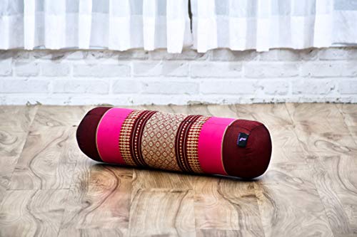 LEEWADEE Yoga Bolster Piccolo: Supporto per Pilates Allungato e Cuscino da Meditazione, Realizzato a Mano in kapok Naturale, 50 x 15 x 15 cm, Rosso Marrone Rosa Fucsia