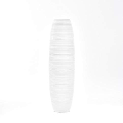 Leewadee grande vaso da terra: vaso alto, elemento decorativo fatto a mano in legno di mango, vaso per rami decorativi, 90 cm, bianco