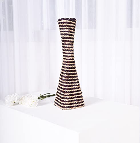 LEEWADEE Small Floor Standing Vase for Home Decor Centerpiece Table Vase, 10x10x40 cm, Water Hyacinth, Brown White