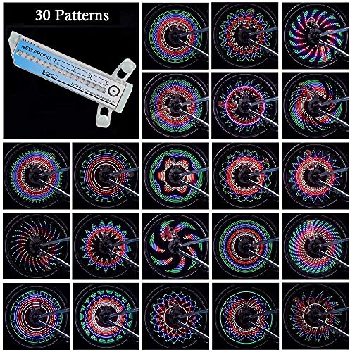 【Sicuro e bello】 Le luci della bici per la guida notturna ti proteggono durante la guida. Luci colorate per pneumatici per ruote di bicicletta progettate per la decorazione del ciclismo e la guida sicura, che aumenteranno la visibilità da tutte le direzioni, quindi gli automobilisti ti vedranno facilmente sia che ti muovi o meno. Consiste di 32 LED (16 LED su ciascun lato). Le luci delle ruote possono lampeggiare con 32 modelli diversi, che cambiano in 4 secondi, molto belli.