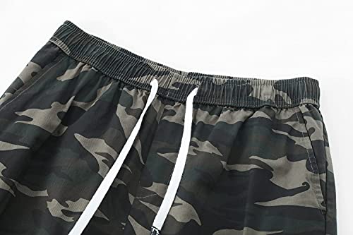 Leezepro Uomo Pantaloncini Cargo in Cotone Bermuda Pantaloni Moda con Coulisse Shorts per Casual Corti (Camo Verde, S)