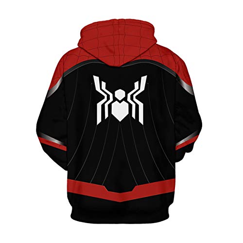 Dettagli: manica lunga, coulisse regolabile, enorme tasca anteriore a canguro, collare rotondo, supereroe Spider Man lontano da casa fantasia Cosplay Hoodies.Ideale per coppie/amanti, abbigliamento sorelle/fratelli, abbigliamento genitore-figlio.
