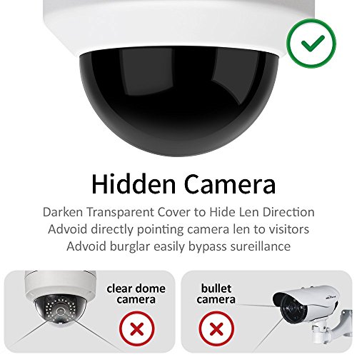[Dimensioni compatte e ben costruito] La telecamera di sicurezza è mini dome da 2,5 pollici, realizzata con corpo interamente in metallo e coperchio trasparente scuro. Sarà più difficile mettere le dita dove esattamente la len è puntata.